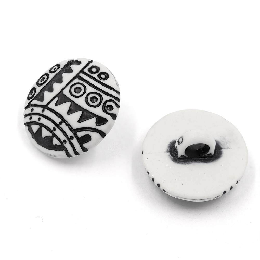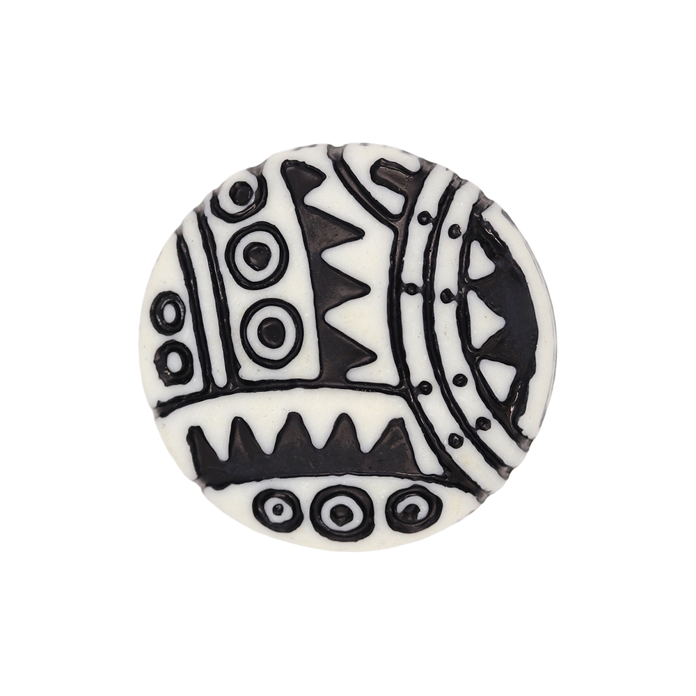 Sullivans 18mm Round Plastic Shank Button With Black Circled Patterns - White - 84 In A Tube