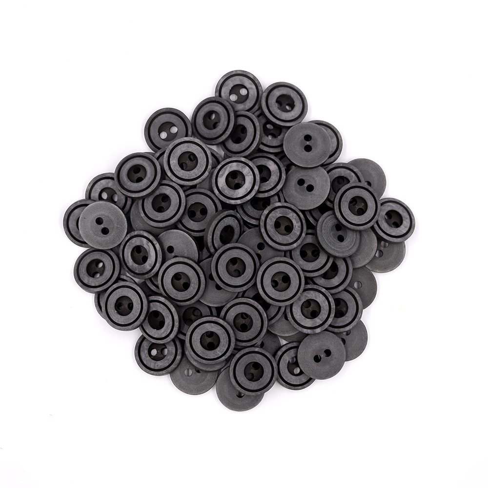 Sullivans 12mm Round Plastic Button 2 Hole With Black Middle And Rim - Dark Grey - 100 In A Bag