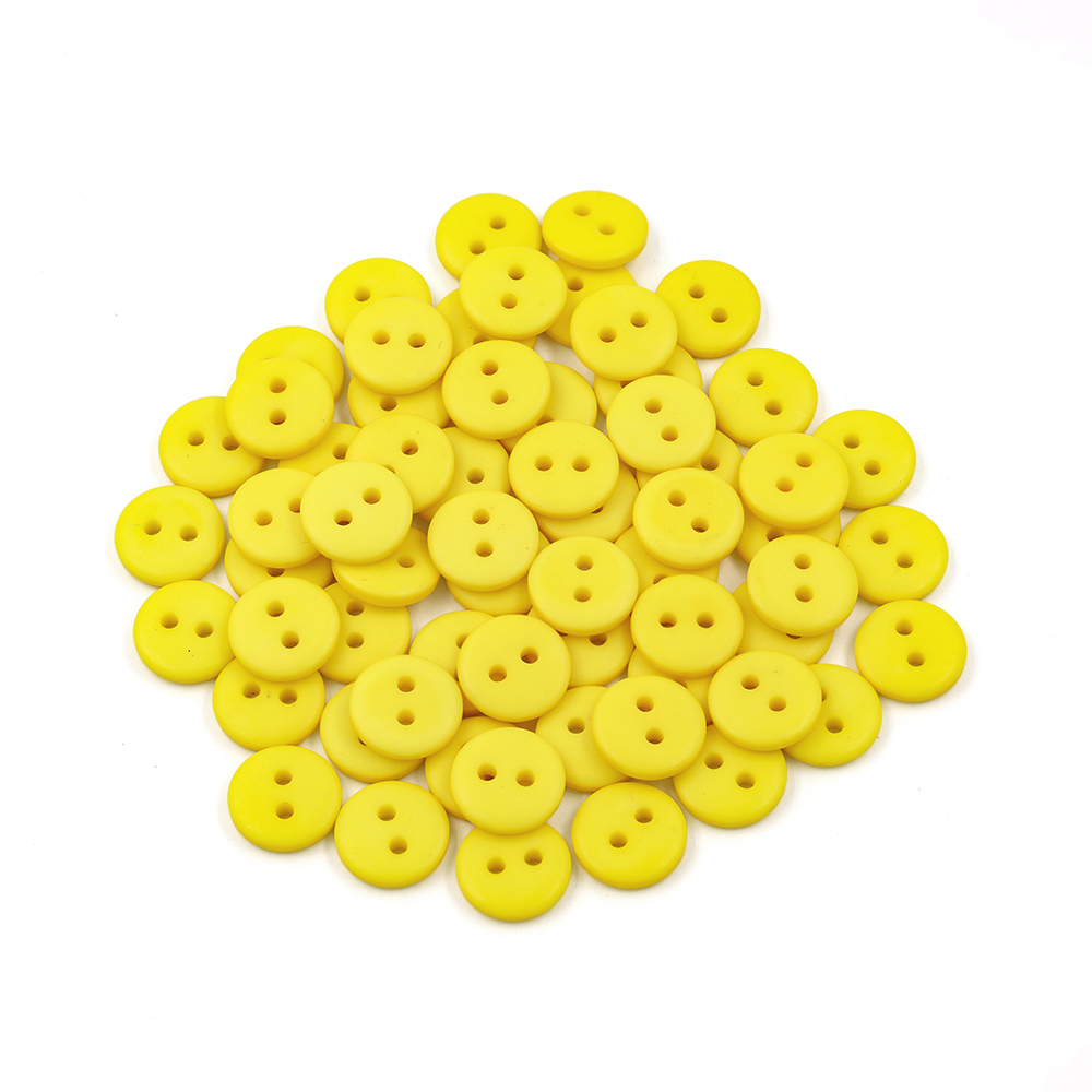 Product: Sullivans 12mm Round Plastic Button 2 Hole -matt Finish - Yellow - 100 In A Bag